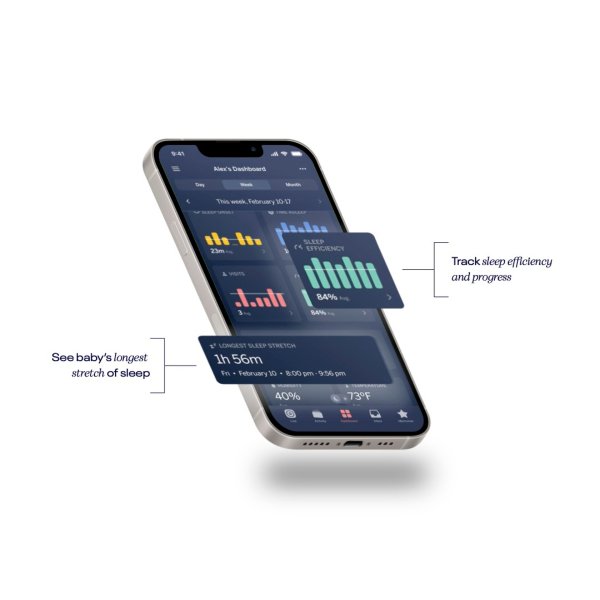 • Smart notifications: cry detection, sleep dashboard, milestone tracking